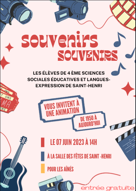 Affiche réalisée pour un spectacle de fin d'année fait par des étudiants autour du souvenir ( musique , film ,...) pour des aînés.